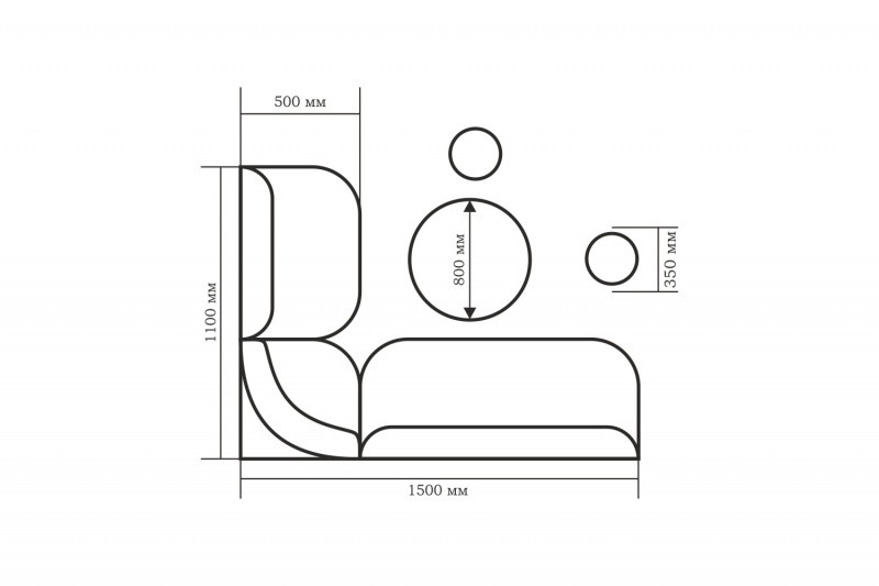Размер углового дивана: 1500х1100х840