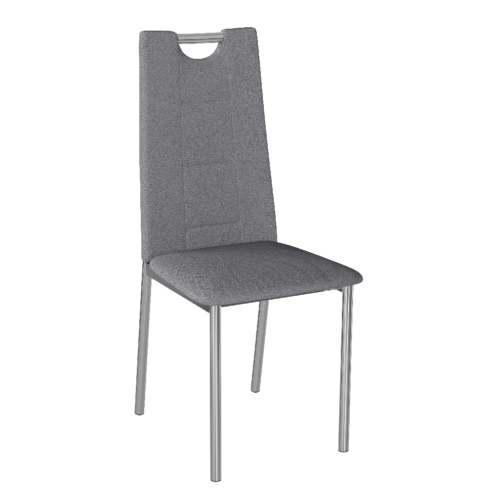 Орлеан - модель стула с удобной высокой спинкой оригинальной формы. Имеет хромированный каркас, мягкие сидушку и спинку, обтянутые рогожкой серого цвета. В комплекте 4 стула.